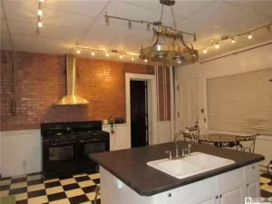 The kitchen, while modernized for contemporary use, retains a sense of historical character.