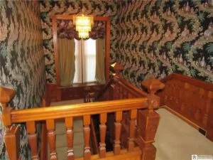 The sweeping decorative staircase that ascends to the second floor stands as a centerpiece of the home, its craftsmanship so intricate that it feels more like sculpture than structure.