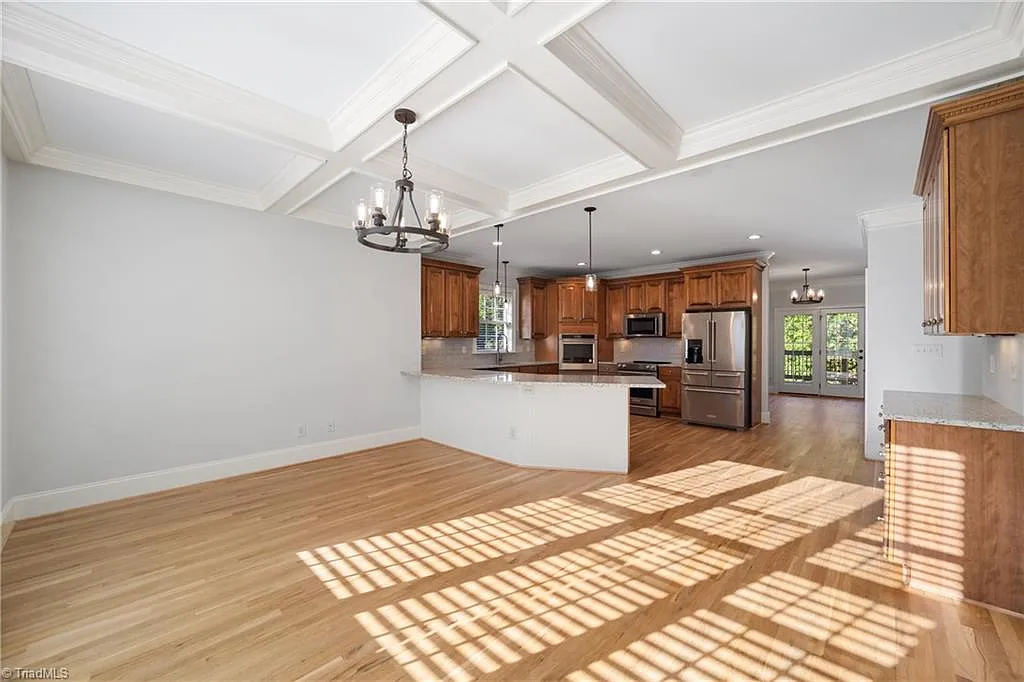 Eat-in Kitchen with coffered ceiling and newer KitchenAid appliances