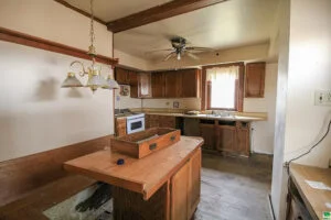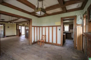 While the home is currently not livable and has no active utilities, its potential is unmistakable.