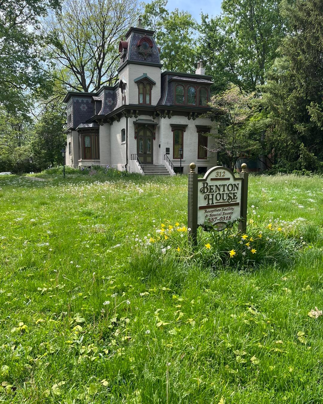 The Benton House is a historic French Mansard-style home in Irvington, Indiana, built in 1873 by Nicholas Ohmer as a model residence. It became the home of Dr. Allen R. Benton, a former Butler University president, and later the Miller family before being sold to the Irvington Historic Landmarks Foundation in 1966 for preservation.
